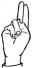 На ћирилици написано АНДРЕЈ ДАБИЋ састоји се из 11 слова [?]. Исписано ћириличном једноручном азбуком за глувонеме: